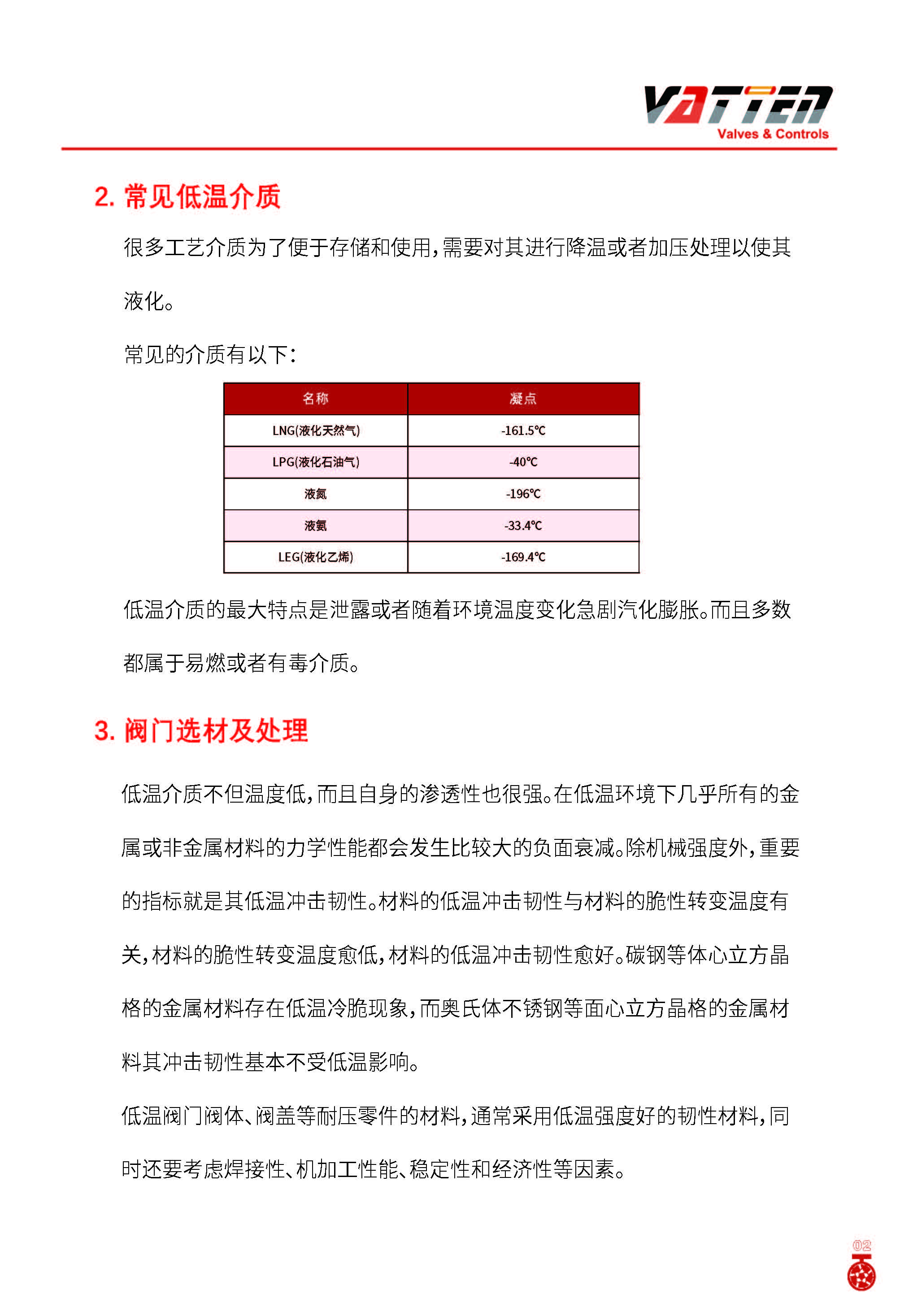 低溫控制閥門通常是指用于切斷或者控制操作溫度極低的工業(yè)介質。低溫閥門所控制的介質除了液氮和其他液態(tài)惰性氣體外,大部分介質不但易燃、易爆而且在升溫或者閃蒸時會發(fā)生氣化,致使體積急劇膨脹,容易導致泄漏和爆炸基于介質特點及適應閥門在低溫下使用的要求,低溫閥門的設計、制造、試驗和安裝方法等均與普通閥門有不同之處。